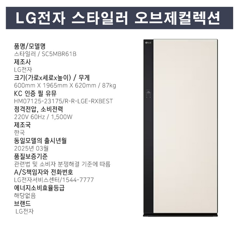 | 정격전압, 소비전력 | 상품 상세페이지 참조 | 에너지소비효율등급 | 상품 상세페이지 참조 |