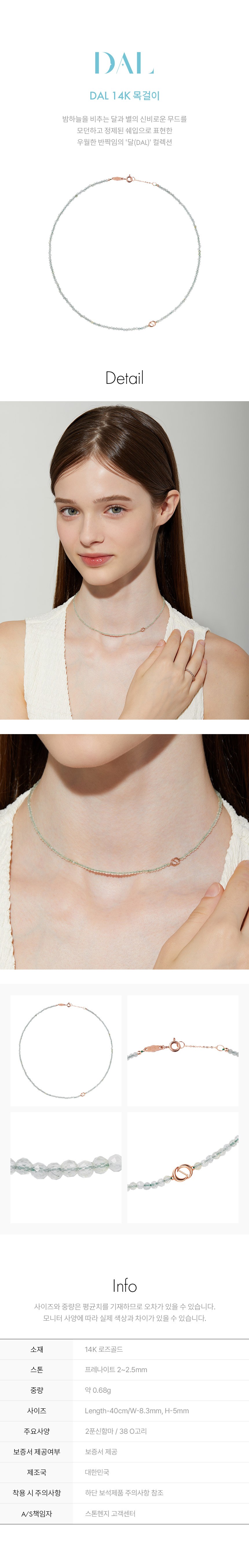 | 치수 | 컨텐츠 참조 | 착용 시 주의사항 | 착용 후 화장품, 땀, 습기, 지문 등의 이물질이 없도록 닦아서 폴리 백에 보관하시면 변색을 최소화할 수 있습니다. 온도가 높은 곳(사우나, 온천탕, 찜질방 등)이나 반대로 온도가 낮은 곳은 피해 주시길 바랍니다. 소재에 따라 습기, 마찰 등에 의해 색이 빠지거나 변색될 수 있으므로 보관에 주의해 주십시오. 향수 또는 스프레이 사용 시 주얼리에 닿지 않게 주의하여 주십시오. |