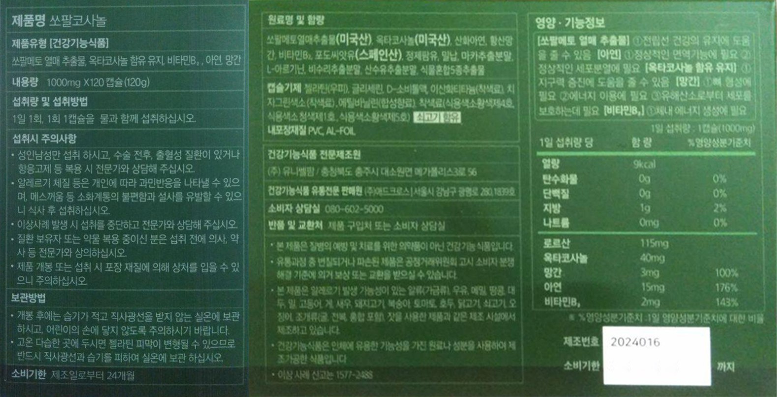 - 건강식품 성분: 복합영양제