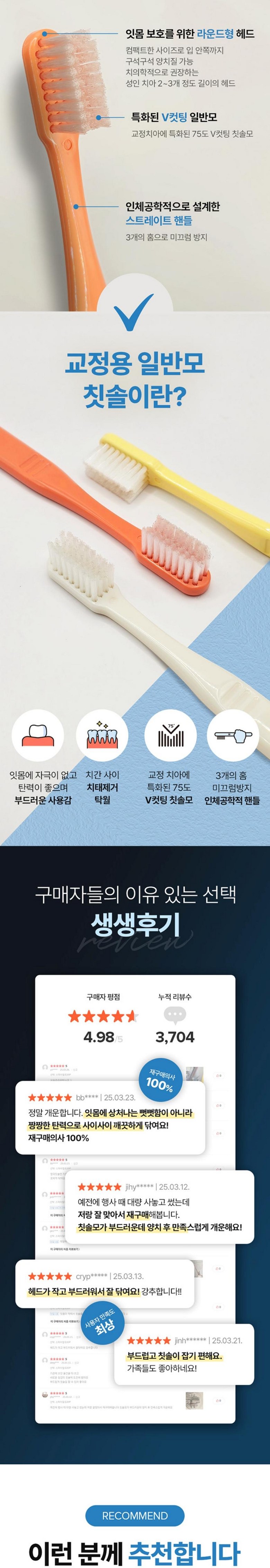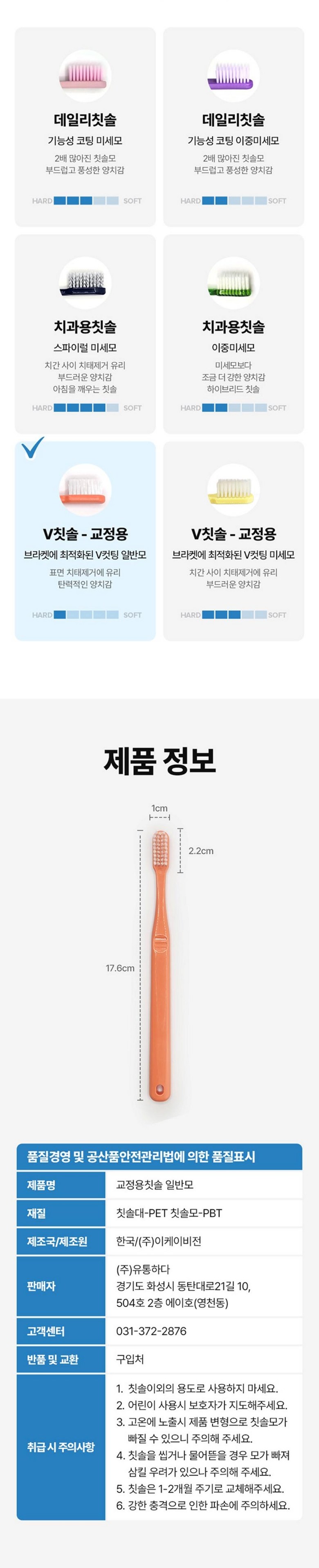 | 품명 및 모델명 | 교정용칫솔 일반모 | 인증/허가 사항 | 상품 상세페이지 참조 |