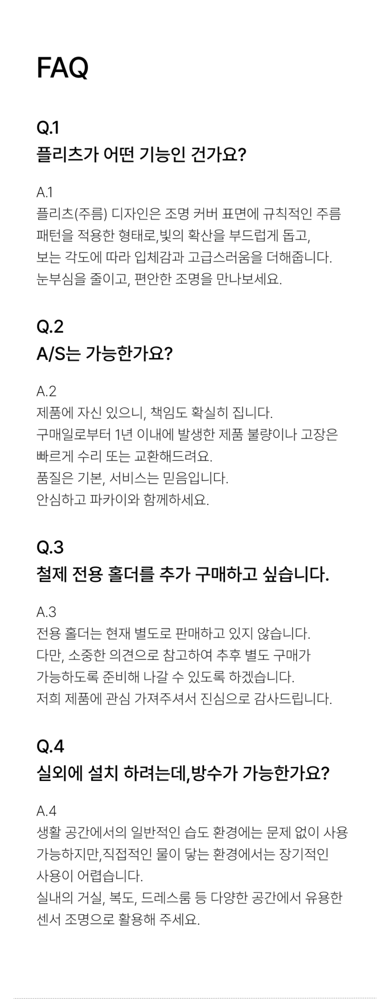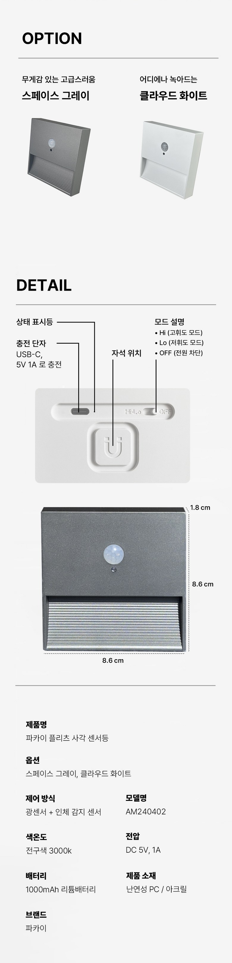 | 품명 및 모델명 | 파카이라이트 플리츠 사각 센서등 | KC 인증정보 | 해당없음 |