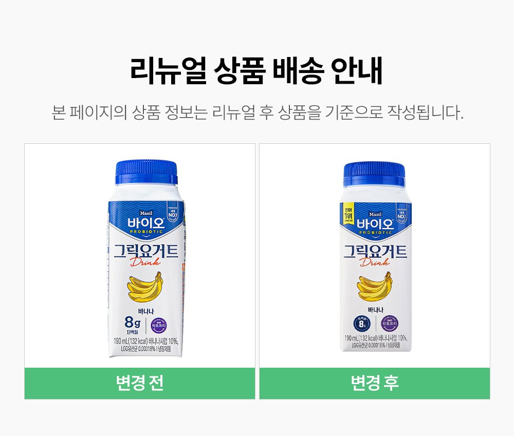 | 제품명 | 바이오 PROBIOTIC 그릭요거트 Drink 바나나 | 식품의 유형 | 컨텐츠 참조 |