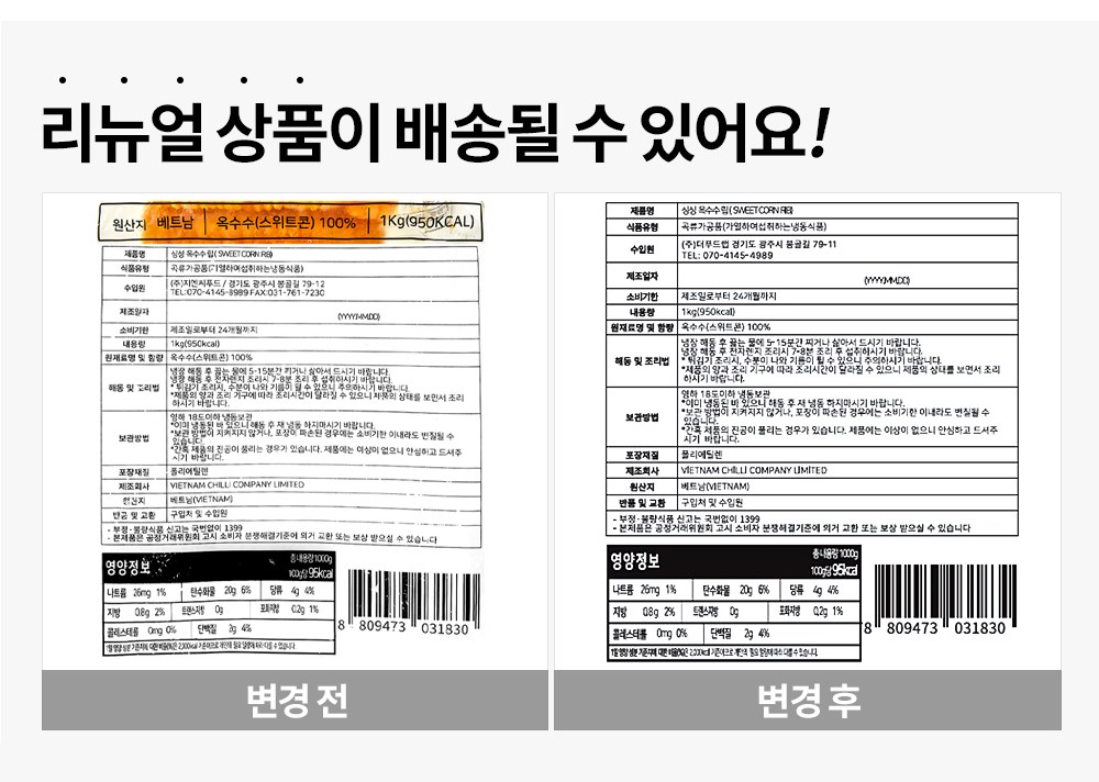 | 포장단위별 내용물의 용량(중량), 수량 | 1kg x 2개 | 원재료명 및 함량 | 컨텐츠 참조 |