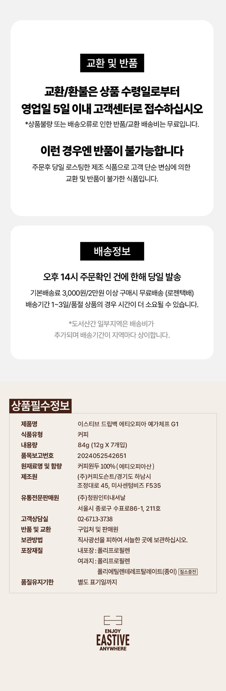 | 생산자 및 소재지 | 상품 상세페이지 참조 | 제조연월일, 소비기한 또는 품질유지기한 | 상품 상세페이지 참조 |