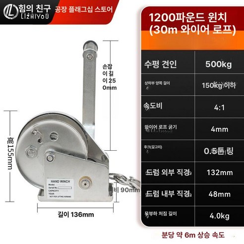 수동 핸드윈치 기어 스테인레스 크레인 윈치 핸드 5m 호이스트