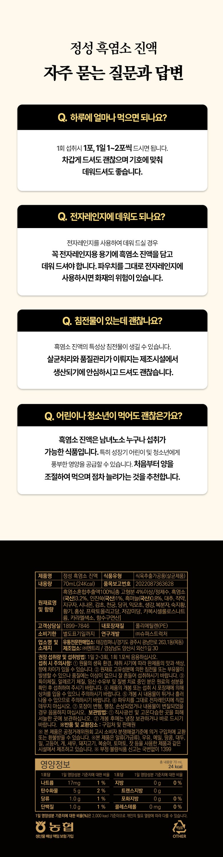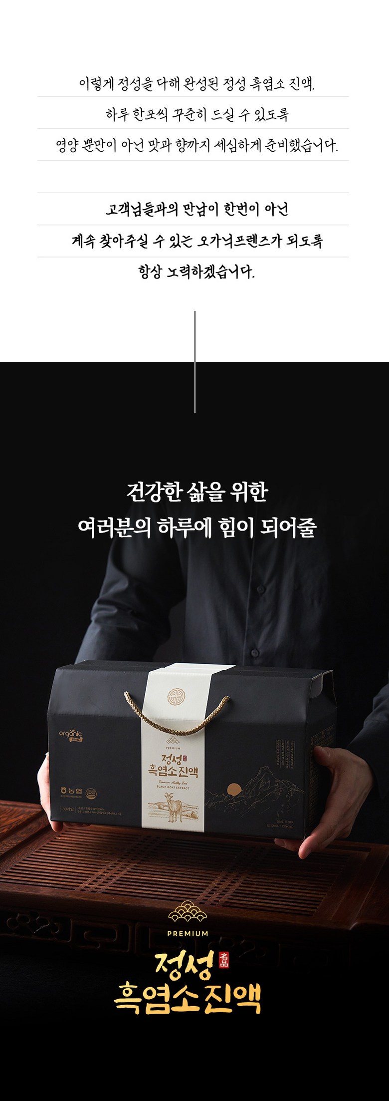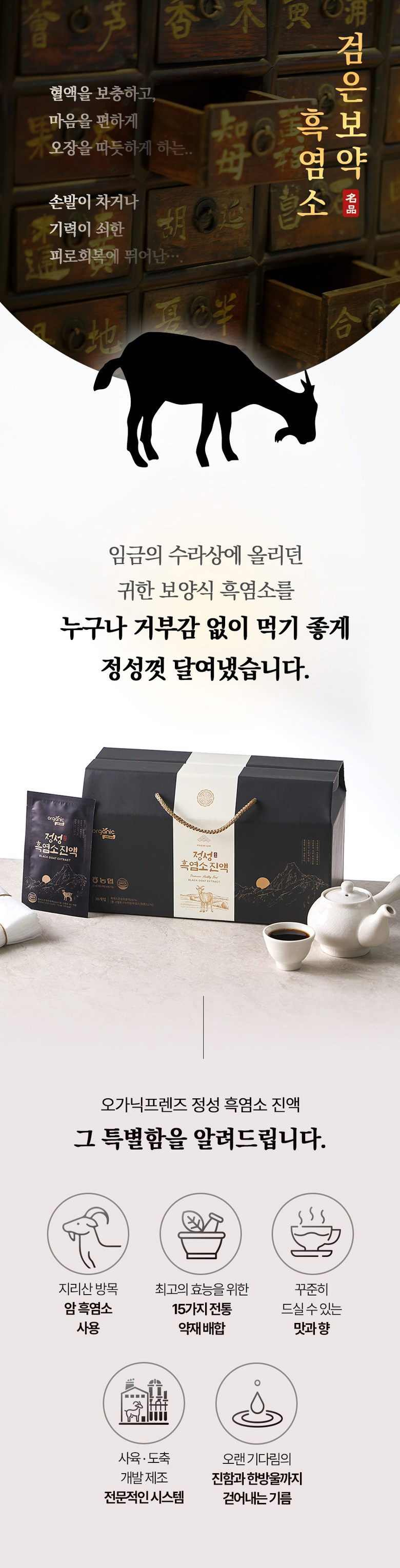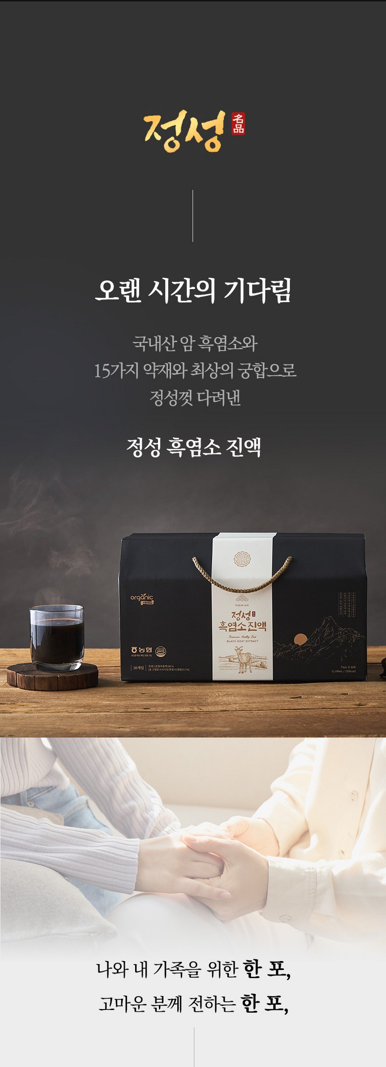 | 제품명 | 정성 흑염소 진액 | 식품의 유형 | 식육추출가공품(살균제품) |