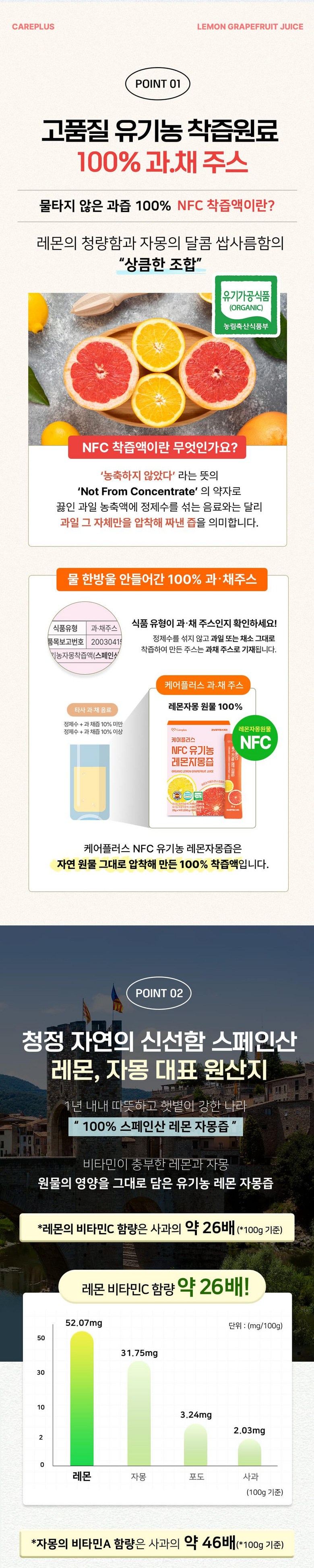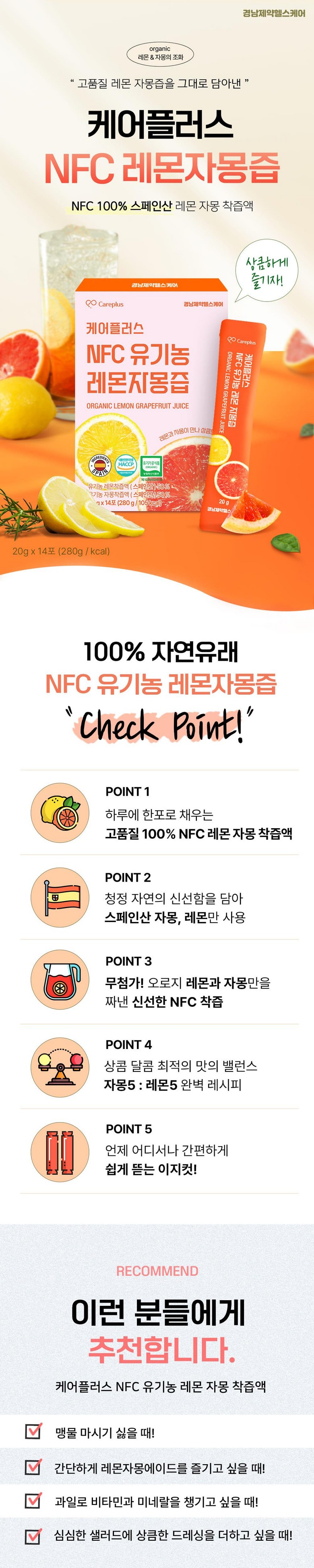 | 제품명 | 경남제약헬스케어 케어플러스 NFC 유기농 레몬자몽즙 | 식품의 유형 | 상품 상세페이지 참조 |