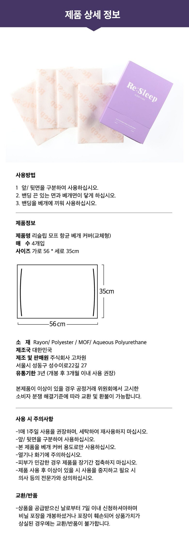 | 품명 및 모델명 | MOF 항균 교체형 베개 커버 4매입 | 인증/허가 사항 | 상품 상세페이지 참조 |