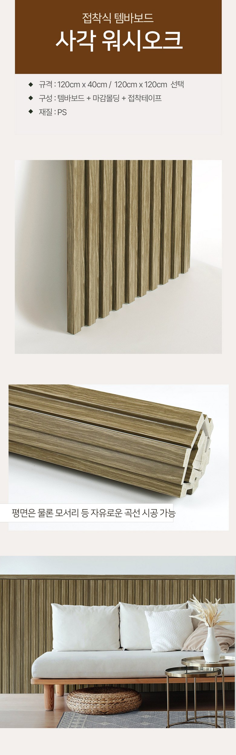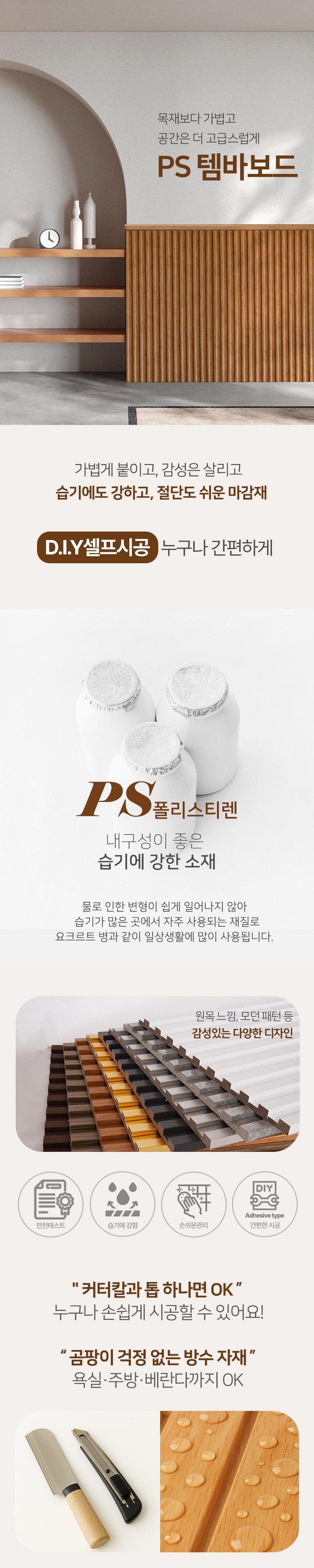 데코앤필름 붙이는 PS 템바보드 사각 습기에 강한 접착식 DIY 셀프 인테리어 패널, 네츄럴오크 120c..., 1개