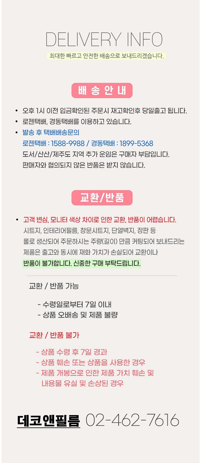 - ㆍ모니터 해상도의 차이로 인해 색상이나 이미지가 실제와 달라, 고객이 단순 변심으로 교환/반품을 무료로 요청하는 경우