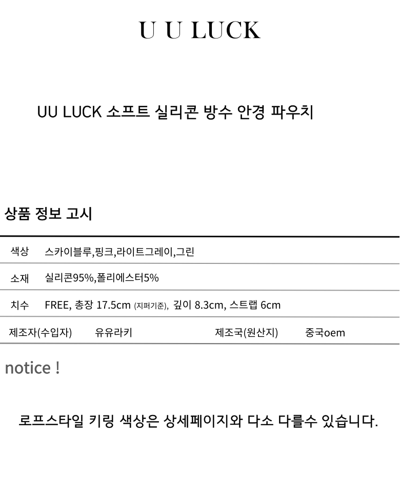 | 치수 | 상품 상세페이지 참조 | 제조자(수입자) | 유유라키 |