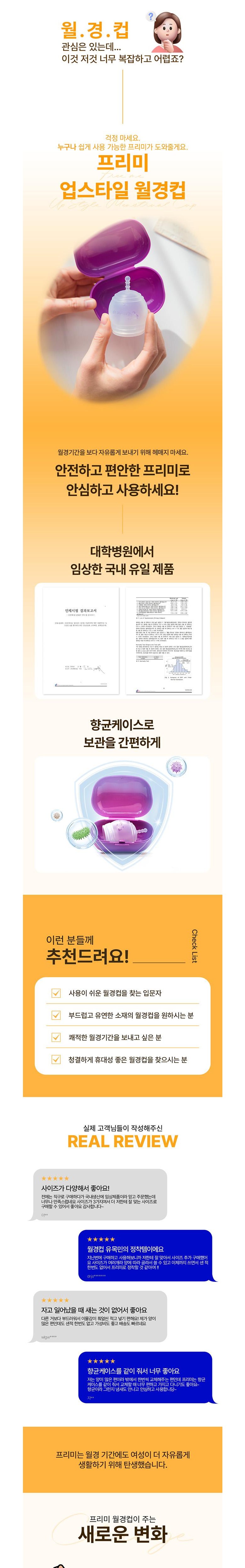 프리미 업스타일 월경컵 100% 의료용 실리콘 국내 유일 임상시험 / 생리컵 생리 월경 생리대 템포
