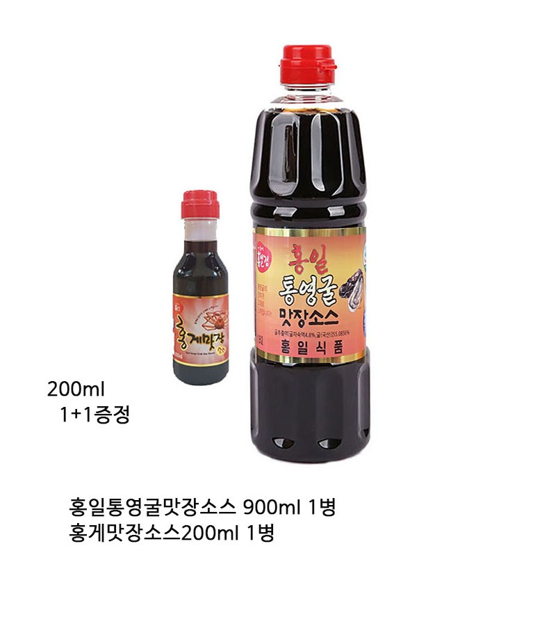 | 포장단위별 내용물의 용량(중량), 수량 | 굴맛장소스900ml 1병+홍게맛장소스200ml 1병(200ml 1+1증정) | 원재료명 및 함량 | 굴추출액[굴자숙농축액5.8%(굴:국산)]55.0856%, 양조간장원액[정제수,탈지대두(인도산 ), 소맥(밀:미국산 ), 천일염, 기타과당], 정제소금(국산) ,홍일간장(홍일간장베이스(홍일간장베이스 ,홍일간장베이스 |)],정제수 및 홍일레드액기스[정제수, 정제소금(국산), 대파(국산), 멸치(국산), 새우(국산), 다시마(국산),양파(국산), 표고버섯(국산), 마늘(국산), 생강(국산), 주청, 쌀조청, 영양강화제 |