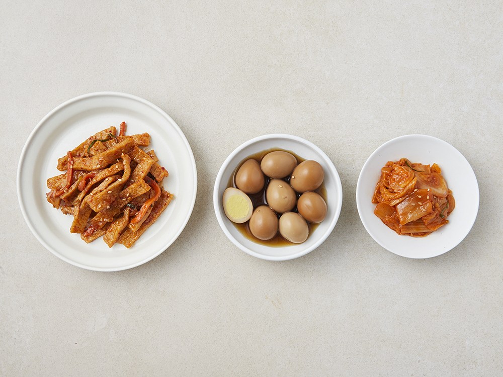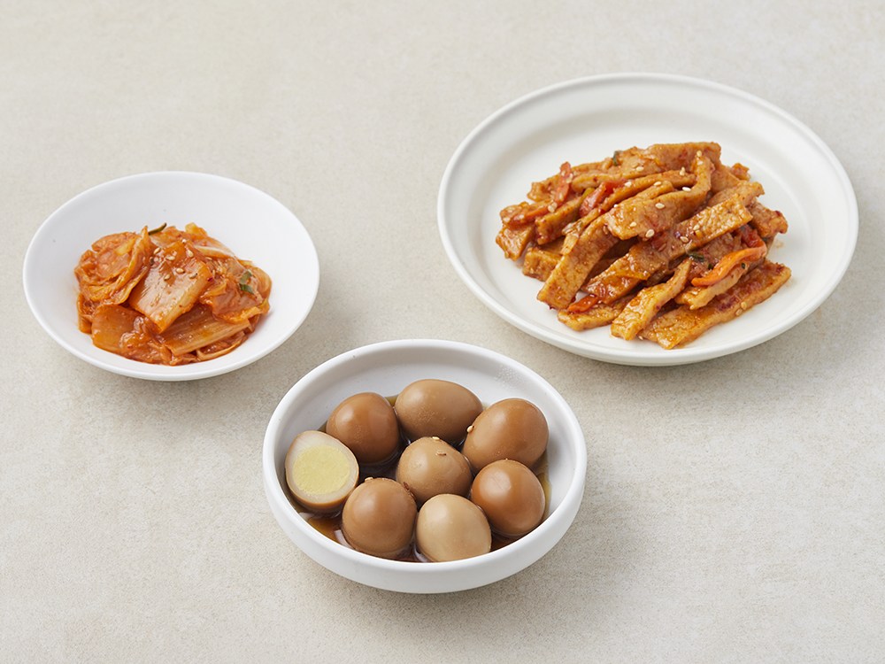- 구성품: 메추리알장조림 120g + 볶음김치 130g + 매콤어묵볶음 110g