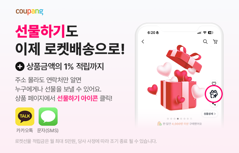 | 배송방법 | 순차배송 | 배송비 | 무료배송 - 로켓배송 상품 중 19,800원 이상 구매 시 무료배송 - 도서산간 지역 추가비용 없음 |