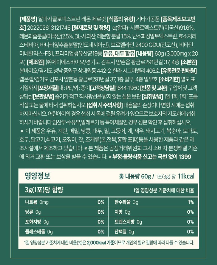 | 생산자 및 소재지 | 컨텐츠 참조 | 제조연월일, 소비기한 또는 품질유지기한 | 소비기한(또는 유통기한) : 2027년 08월 20일 이거나 그 이후인 상품 제조년월일 : 2025년 08월 21일 이후인 제조상품 |