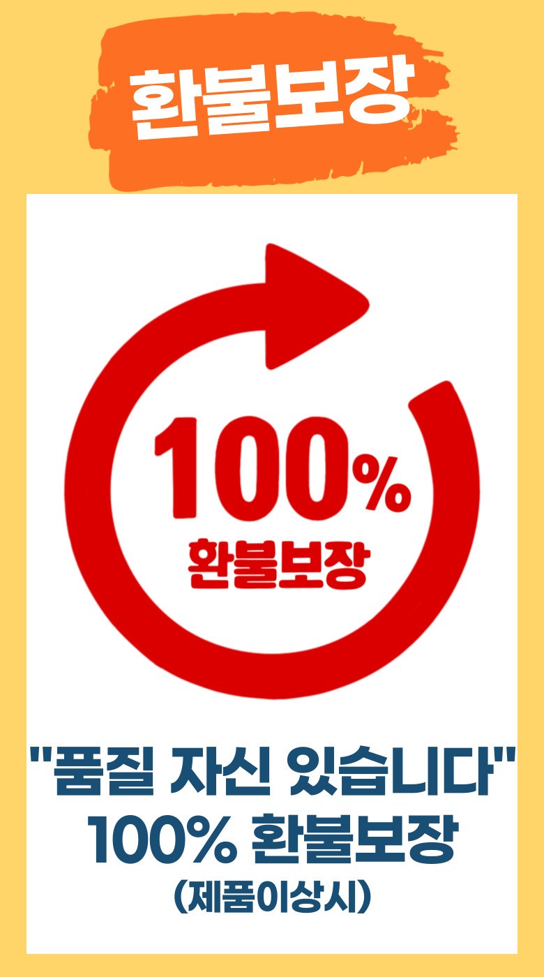 | 교환/반품 신청 기준일 | ㆍ단순변심에 의한 교환/반품은 제품 수령 후 7일 이내까지, 교환/반품 제한사항에 해당하지 않는 경우에만 가능 (배송비용과 교환/반품 비용 왕복배송비 고객부담) ㆍ상품의 내용이 표시·광고의 내용과 다른 경우에는 상품을 수령한 날부터 3개월 이내, 그 사실을 안 날 또는 알 수 있었던 날부터 |