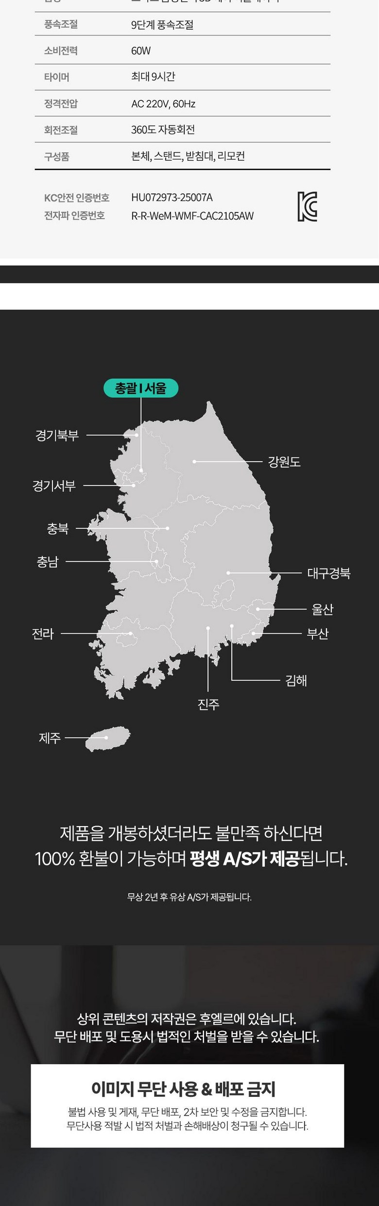 | 정격전압, 소비전력 | 220V, 60Hz | 에너지소비효율등급 | 해당없음 |