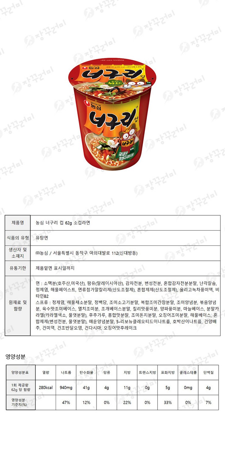 - 컵라면 용기 크기: 작은컵 (80g 이하)