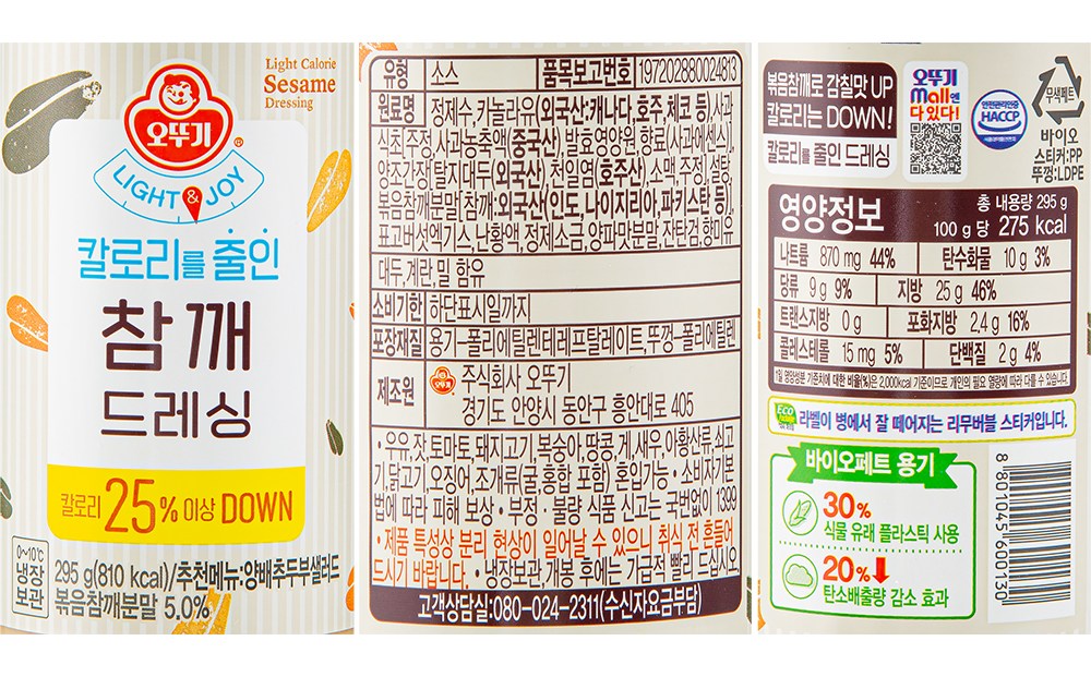 | 제품명 | 칼로리를 줄인 참깨드레싱 | 식품의 유형 | 컨텐츠 참조 |