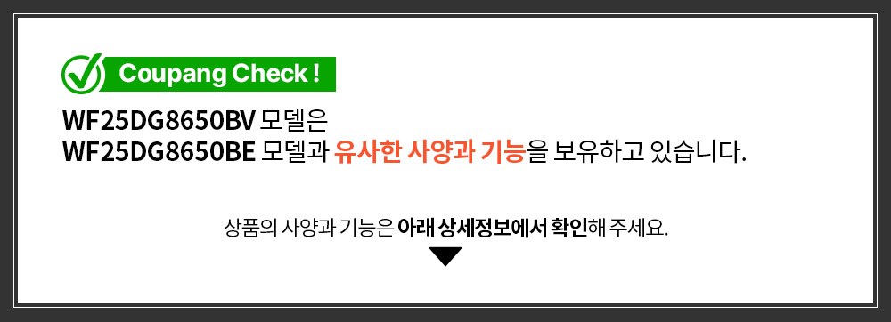 | 품명 및 모델명 | 세탁기 / WF25DG8650BV | KC 인증정보 | 본품 : HU072172-24023, R-R-SEC-WF8000DKR / 무선기기 : R-C-SEC-CCAR210R |