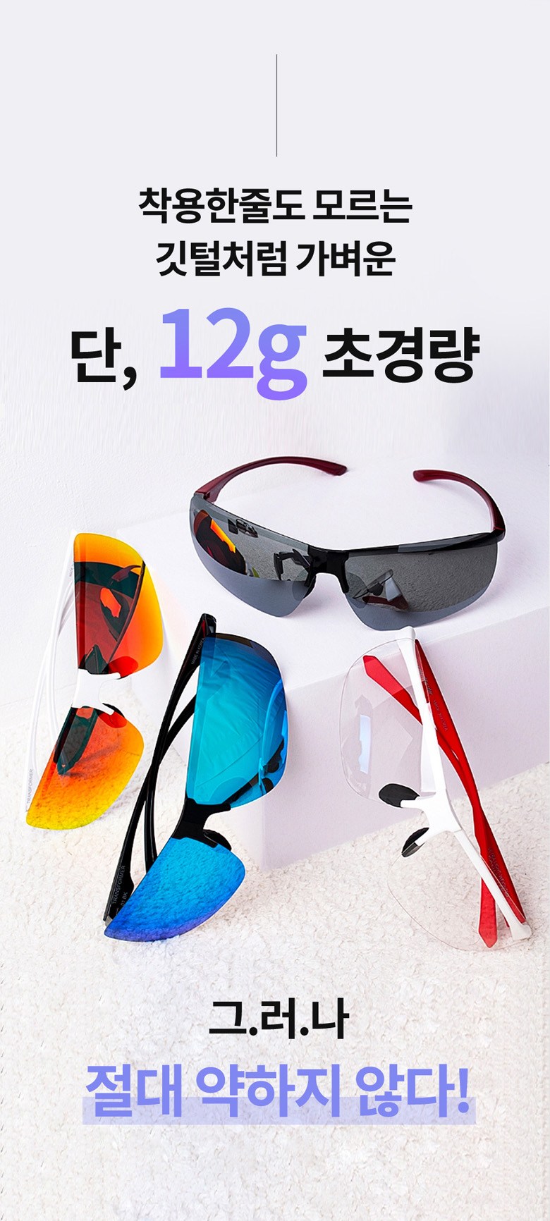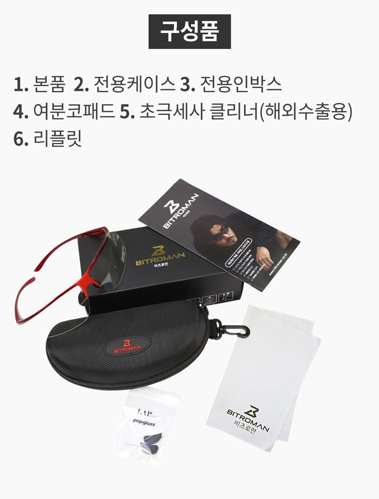| 품명 및 모델명 | 12g 초경량 편광 변색 스포츠 고글 선글라스 비츠로만 12g 편광변색 / 블랙 단일사이즈 999개 | KC 인증정보 | 해당없음 |