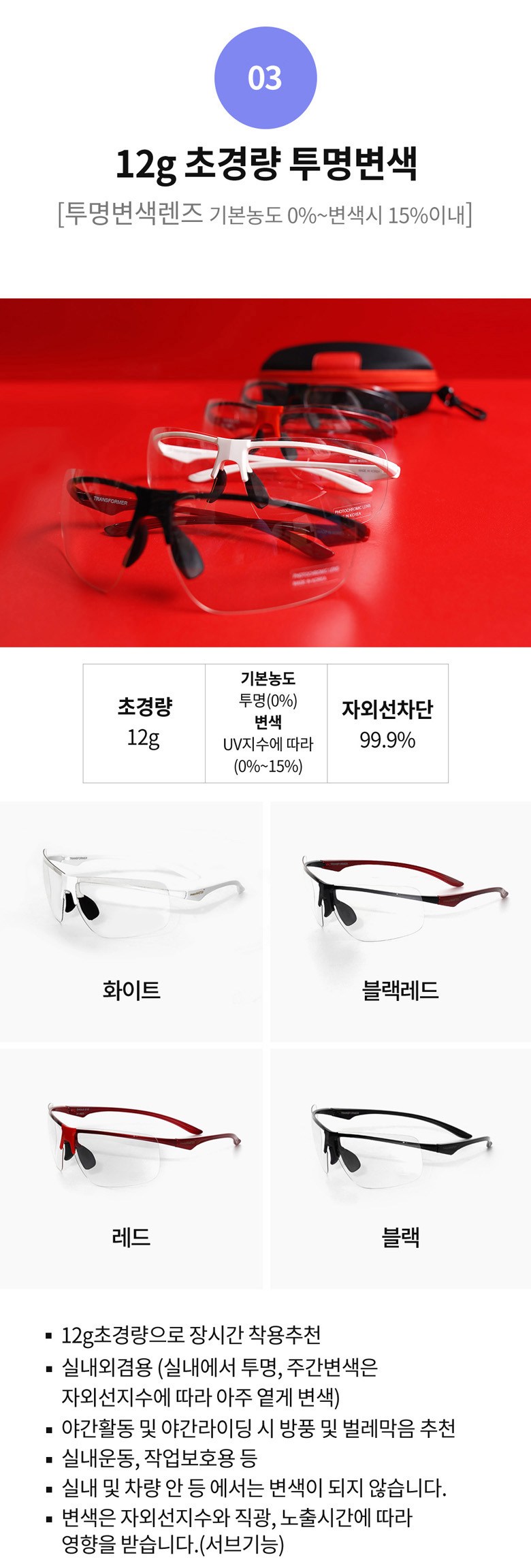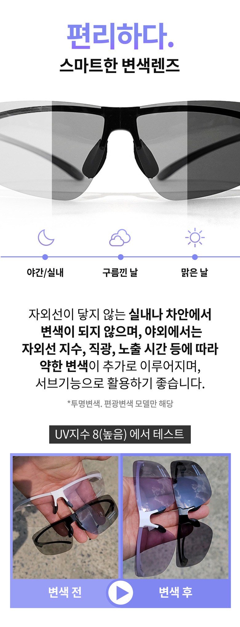 - 자외선 차단 여부: 자외선 차단 가능
