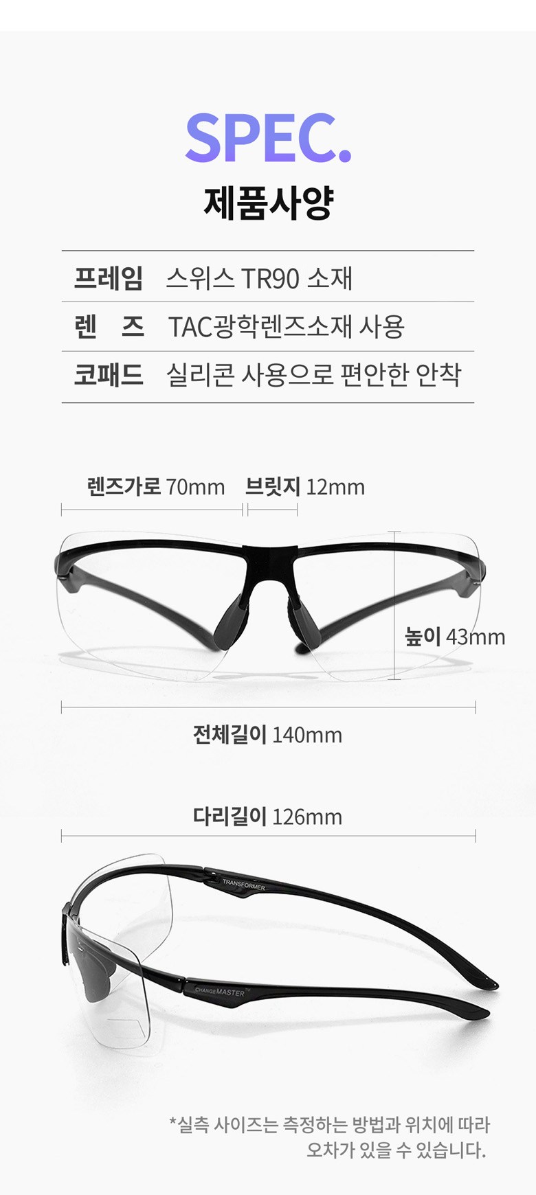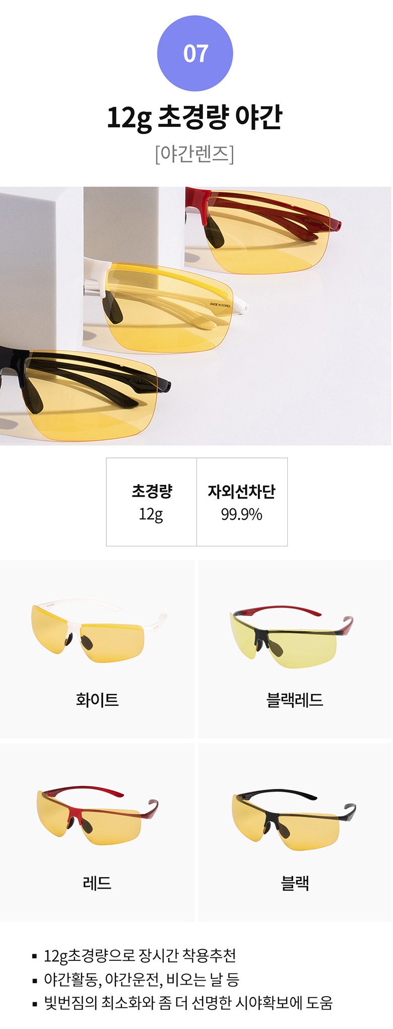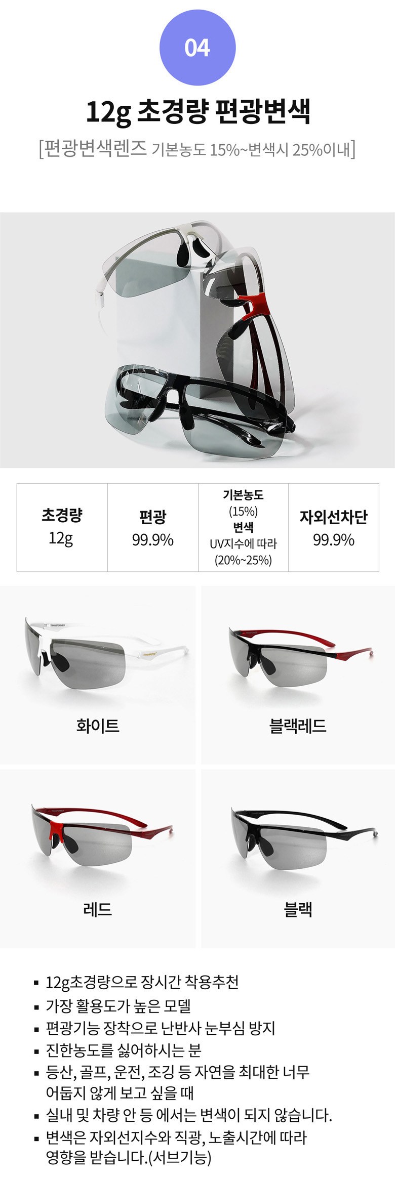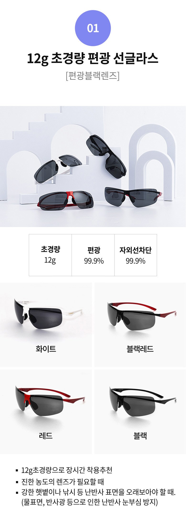 - 렌즈 종류: 편광렌즈(반사되는 빛을 차단)