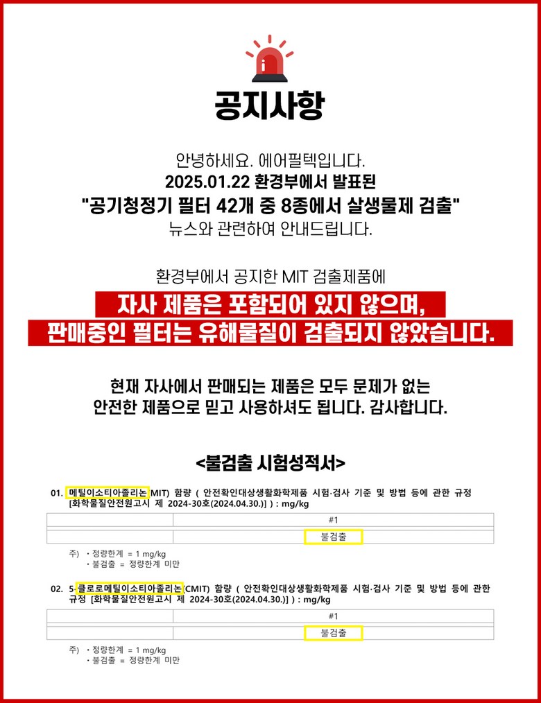 | 품명 및 모델명 | [에어필텍] 샤오미 호환 필터 | KC 인증정보 | 해당없음 |