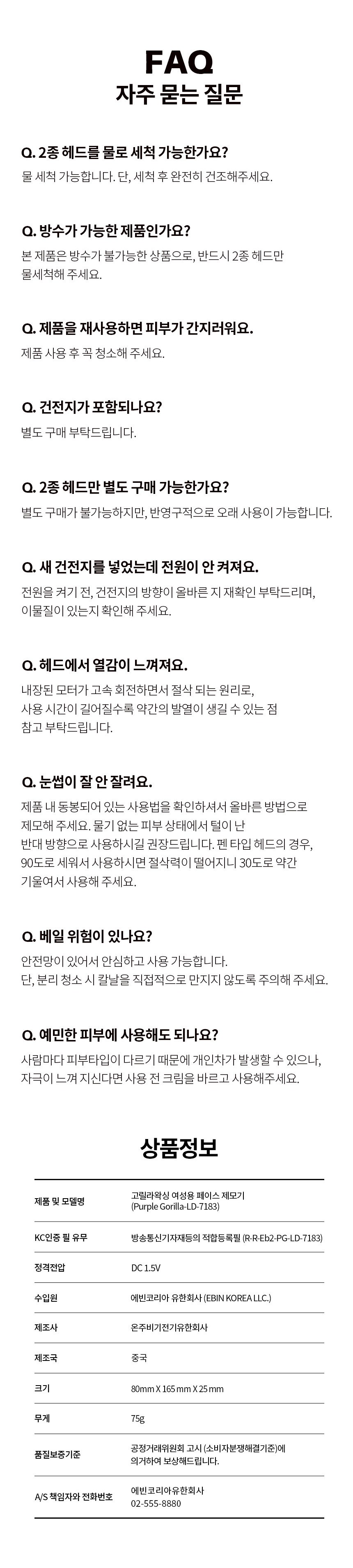 | 품명 및 모델명 | 고릴라왁싱 여성용 페이스 제모기 / Purple Gorilla-LD-7183 (LD-7183) | KC 인증정보 | R-R-Eb2-PG-LD-7183 |