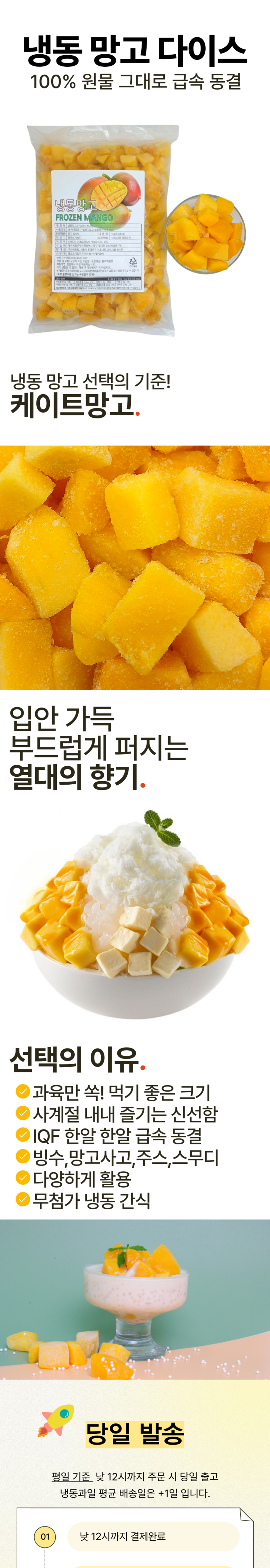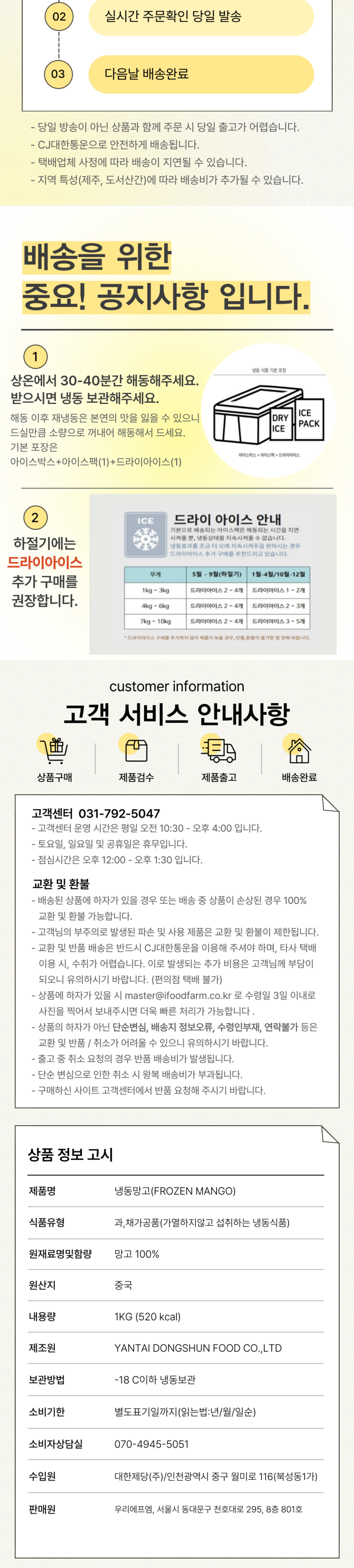 | 배송방법 | 신선/냉장/냉동 | 배송비 | 무료배송 · 도서산간 추가 배송비 - 제주 지역: 4,000원 - 도서산간 지역: 4,000원 |