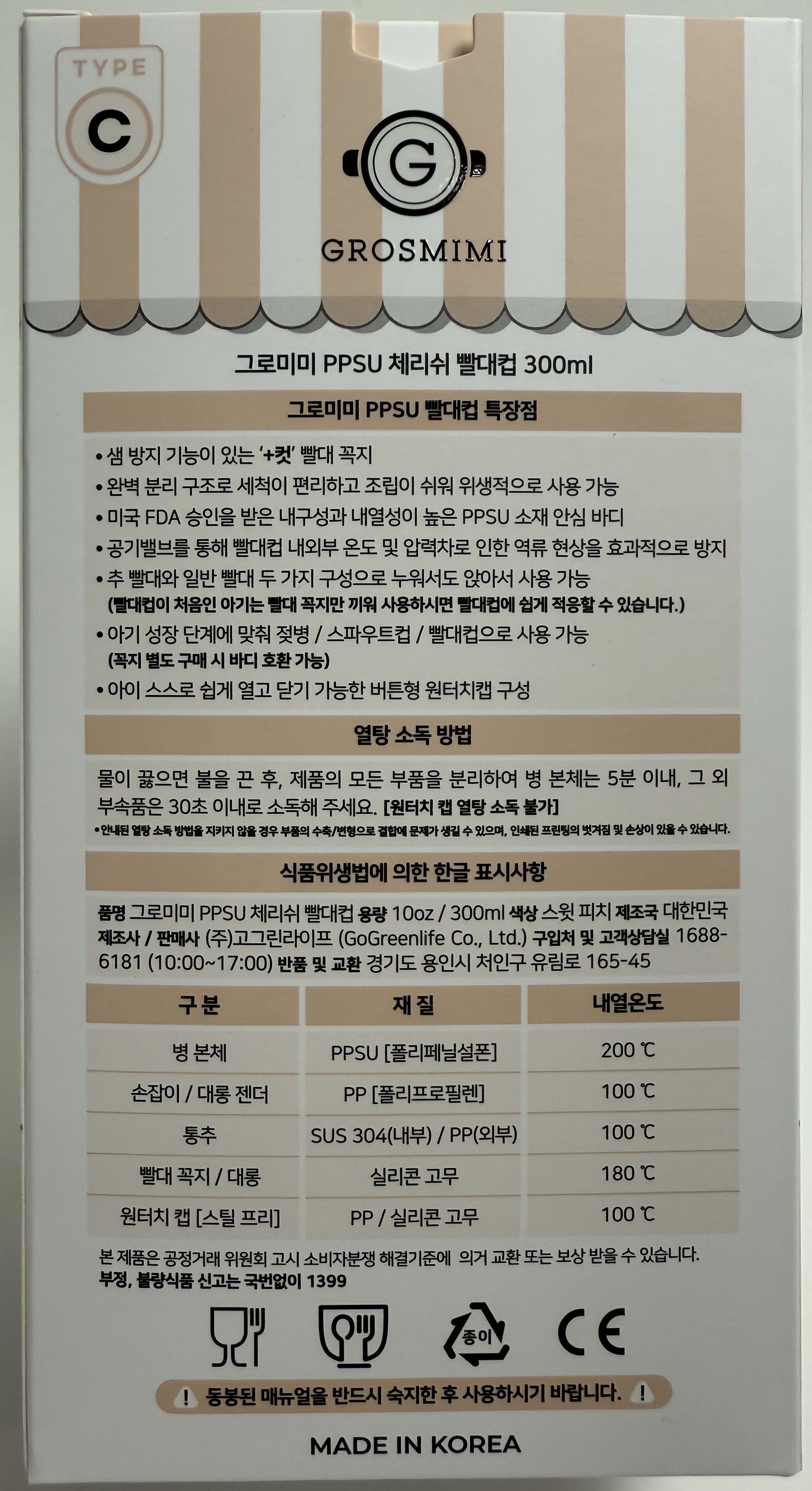 | 품명 및 모델명 | 그로미미 PPSU 체리쉬 빨대컵 [추 빨대 포함] | 재질 | 컨텐츠 참조 |