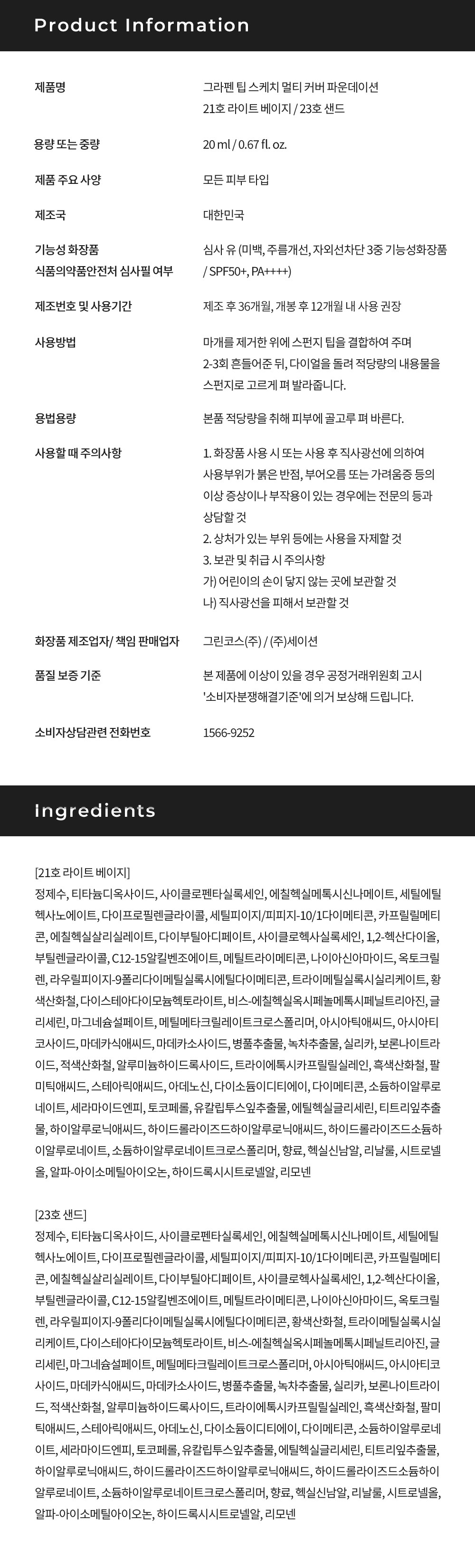 | 화장품제조업자, 화장품책임판매업자 및 맞춤형화장품판매업자 | 컨텐츠 참조 | 제조국 | 컨텐츠 참조 |