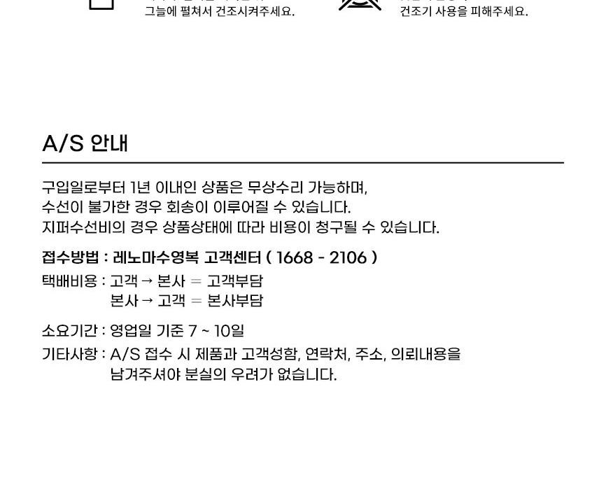 - ㆍ모니터 해상도의 차이로 인해 색상이나 이미지가 실제와 달라, 고객이 단순 변심으로 교환/반품을 무료로 요청하는 경우