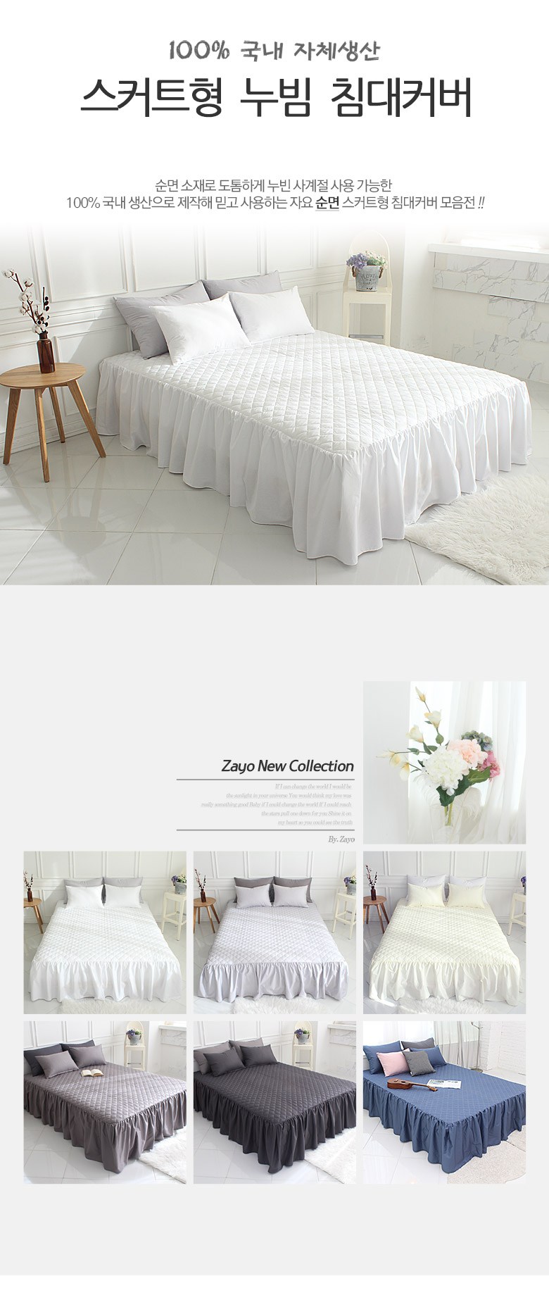 | 제품 소재 | 겉면원단:면100%, 충전재:폴리에스터 100% | 색상 | 화이트, 연그레이, 아이보리, 진그레이, 차콜, 딥블루 |