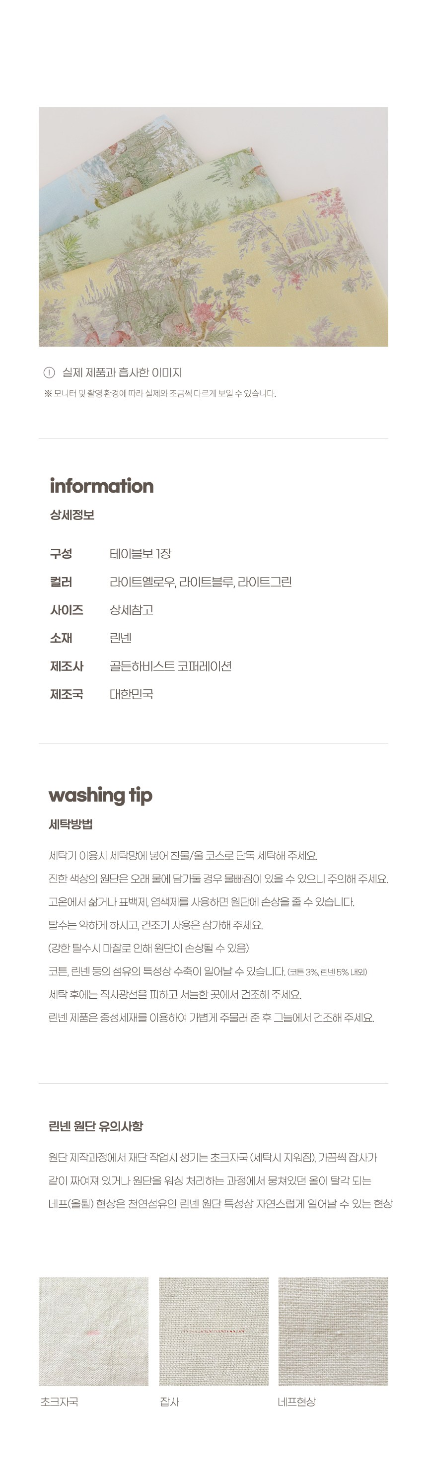 | 품명 및 모델명 | 포홈 핸드메이드 르네상스 린넨 테이블보/협탁보 라이트그린 1개 L(130cmx160cm) | 재질 | 컨텐츠 참조 |