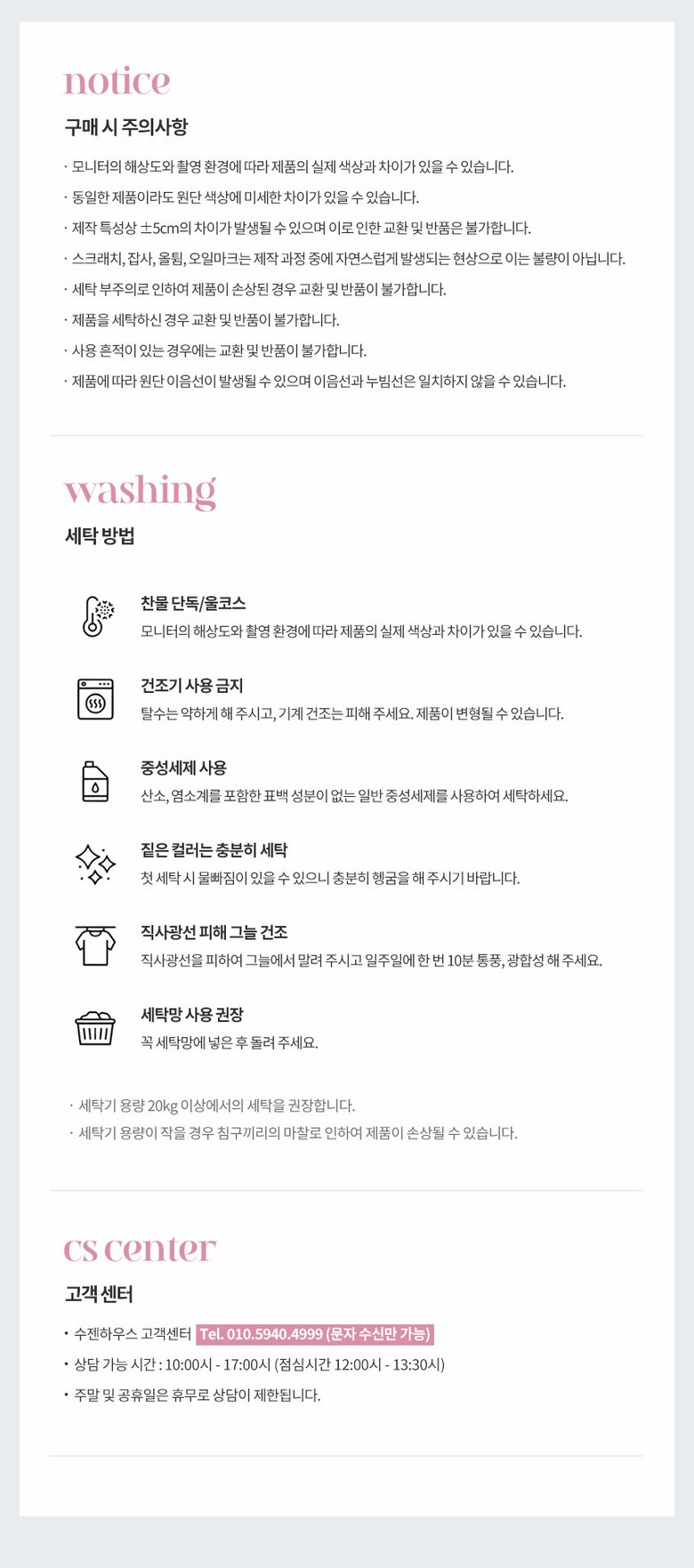 - ㆍ모니터 해상도의 차이로 인해 색상이나 이미지가 실제와 달라, 고객이 단순 변심으로 교환/반품을 무료로 요청하는 경우