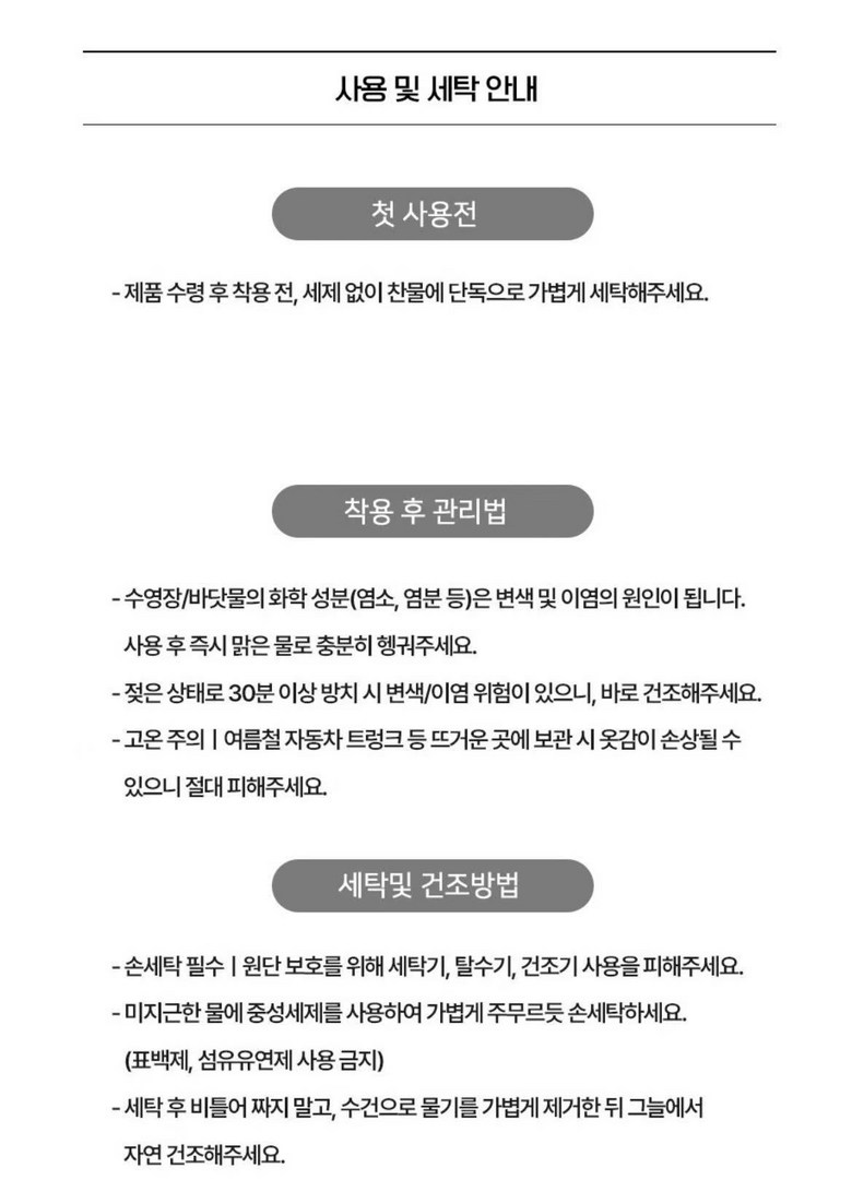 - ㆍ교환/반품에 관한 일반적인 사항은 판매자가 제시사항보다 관계법령이 우선합니다.
