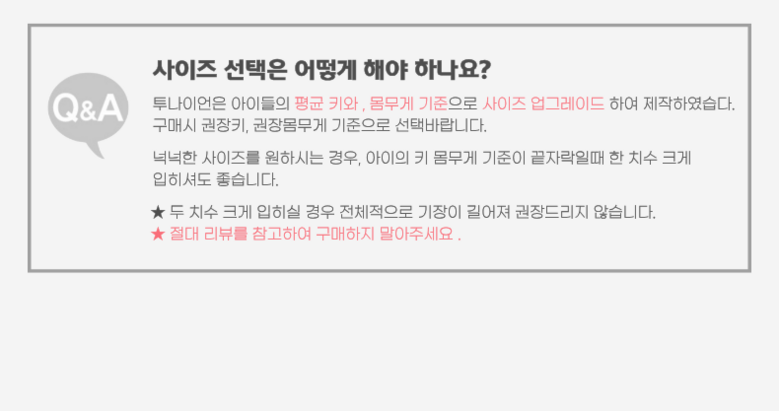 구매시 권장키,권장몸무게 기준으로 선택바랍니다.