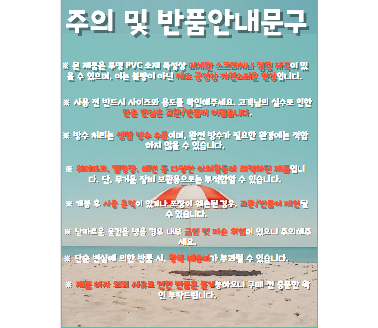 - ㆍ교환/반품에 관한 일반적인 사항은 판매자가 제시사항보다 관계법령이 우선합니다.