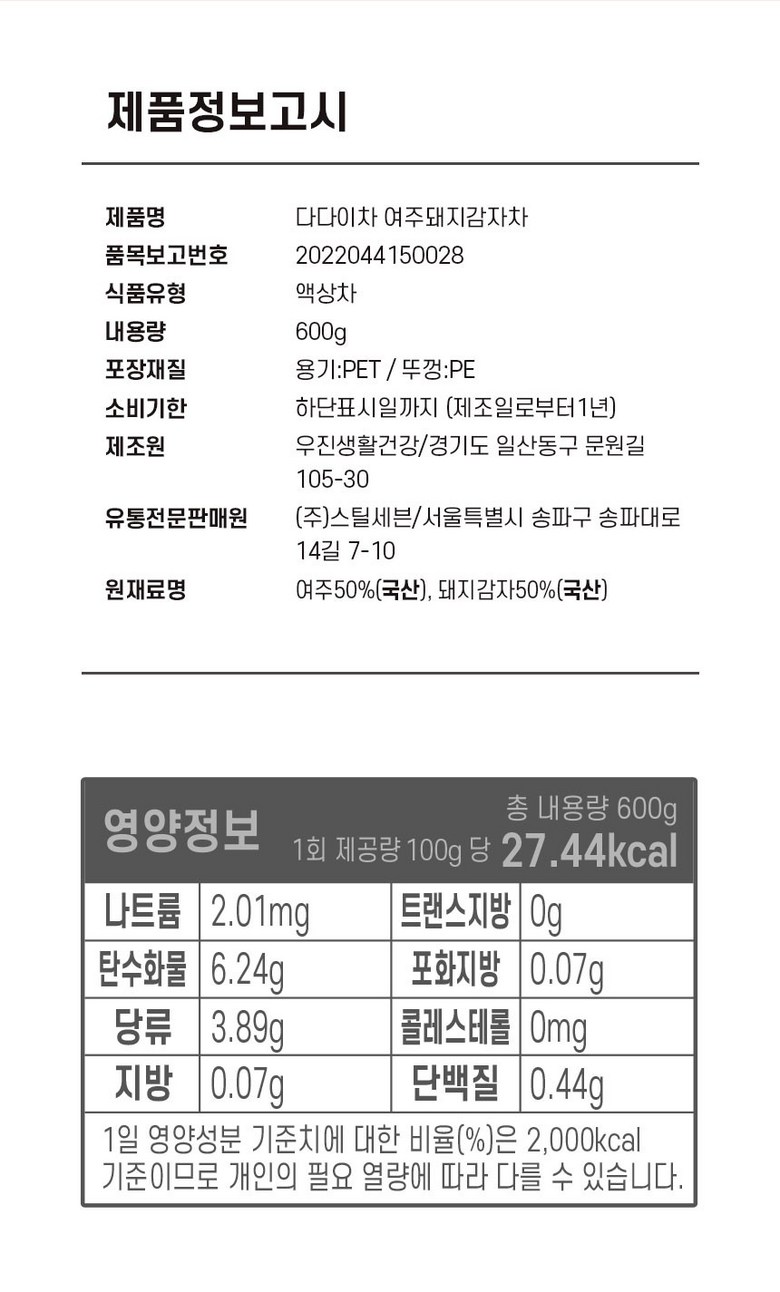 | 제품명 | 상품 상세페이지 참조 | 식품의 유형 | 상품 상세페이지 참조 |