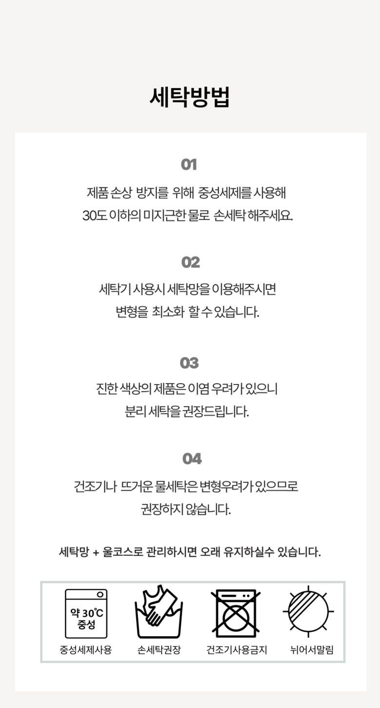 | 제조국 | 중국 | 세탁방법 및 취급시 주의사항 | 상품 상세페이지 참조 |