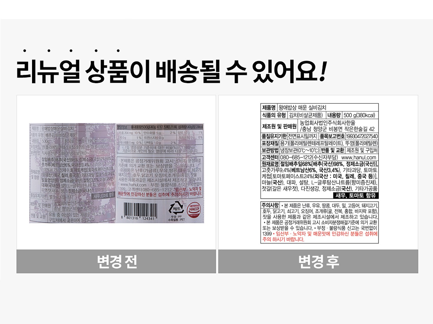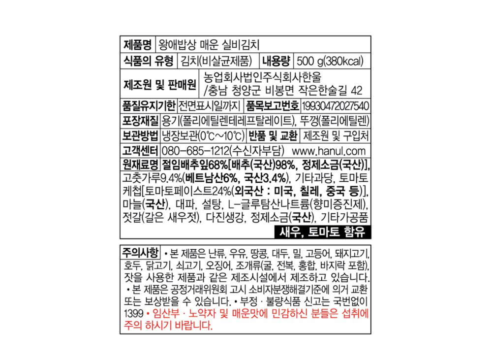 | 포장단위별 내용물의 용량(중량), 수량 | 500g x 2개 | 원재료명 및 함량 | 컨텐츠 참조 |