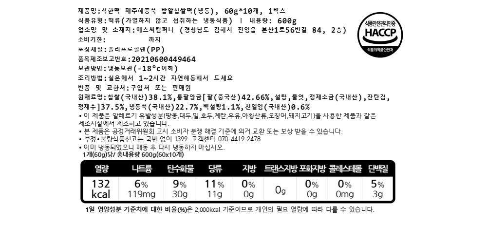 | 제품명 | 밥알찹쌀떡 | 식품의 유형 | 컨텐츠 참조 |