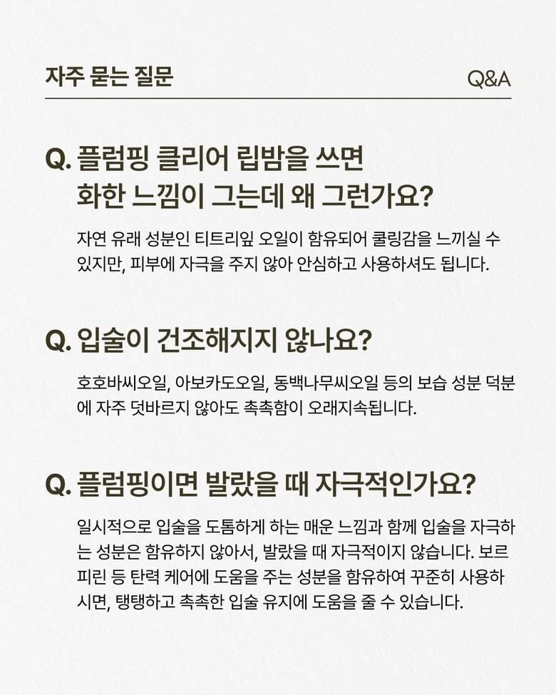 - 가격, 판매자, 교환/환불 및 배송 등 해당 상품 자체와 관련 없는 문의는 고객센터 내 1:1 문의하기를 이용해주세요.