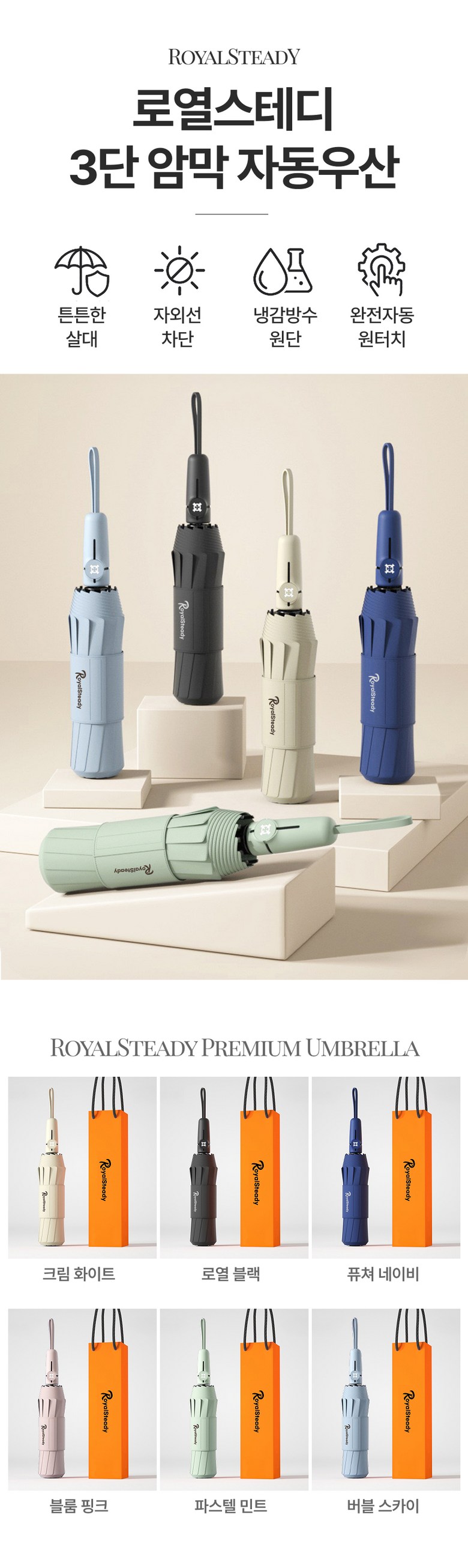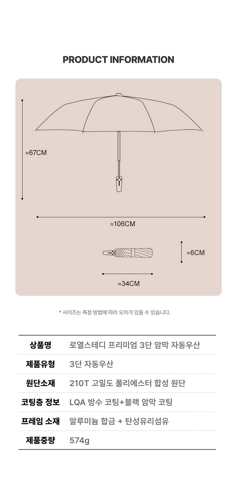 | 종류 | 자동 암막 3단 우산 | 소재 | 상품 상세페이지 참조 |