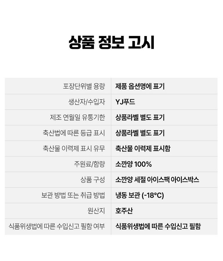 | 생산자(수입자) | (주)신돈축산 | 원산지 | 호주 |