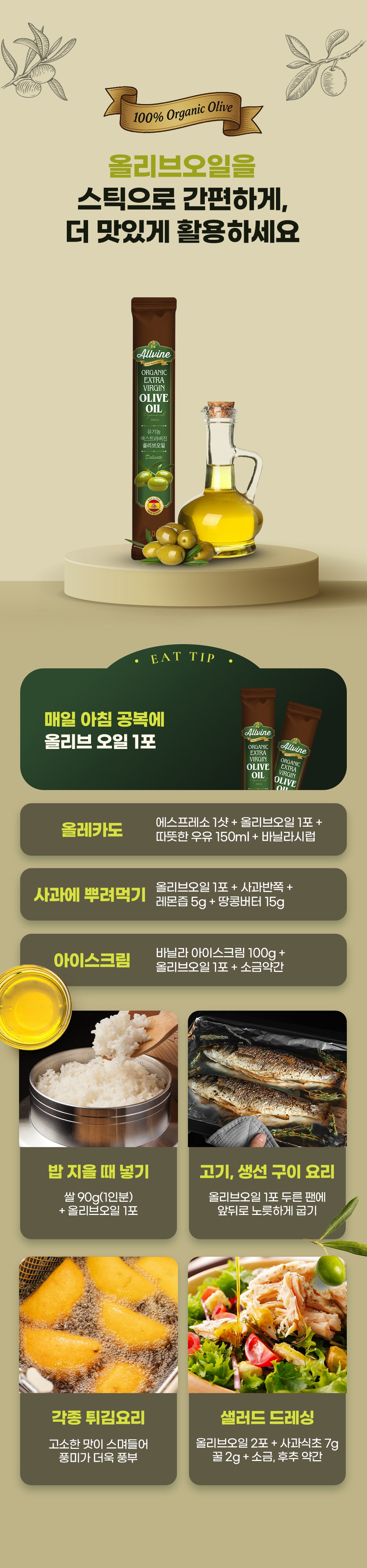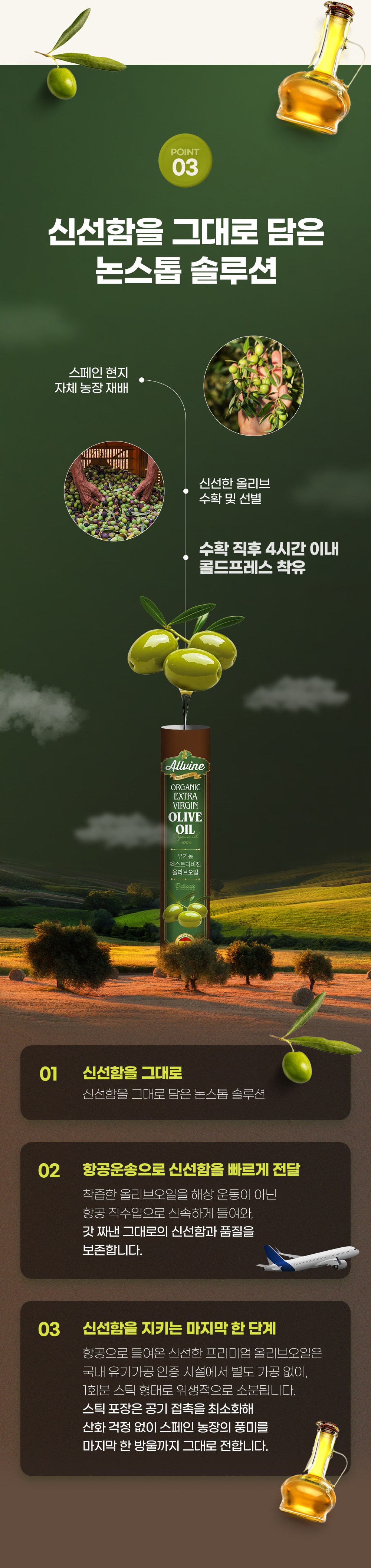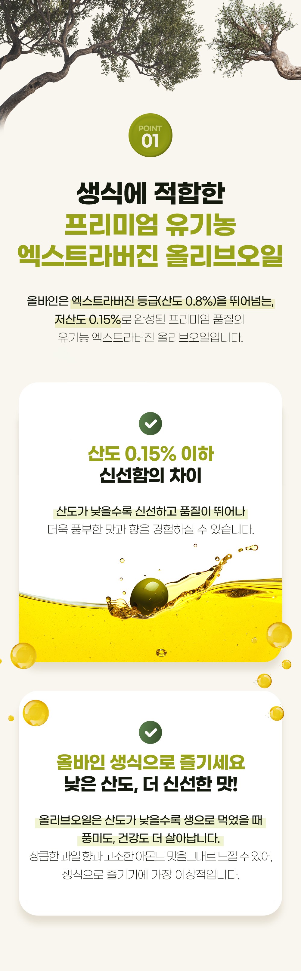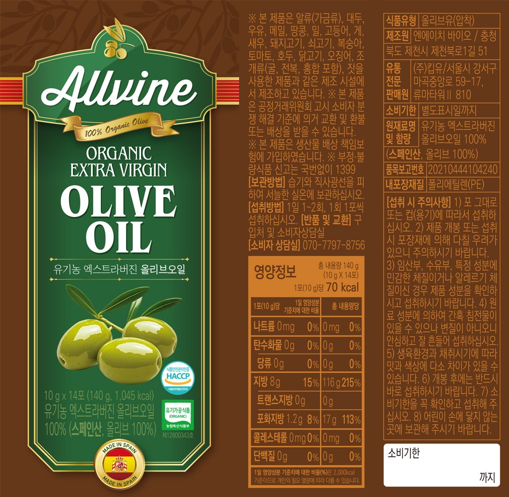 | 제품명 | 유기농 엑스트라버진 올리브오일 | 식품의 유형 | 컨텐츠 참조 |