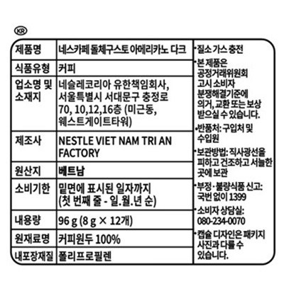 - 맛/향: 아메리카노/블랙