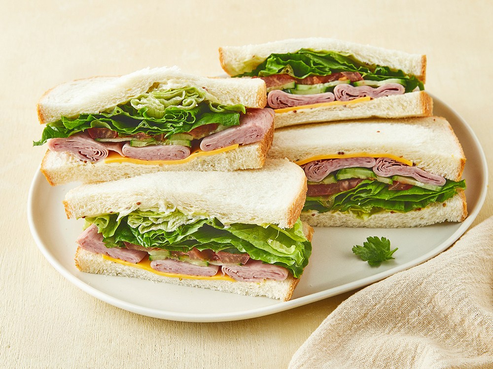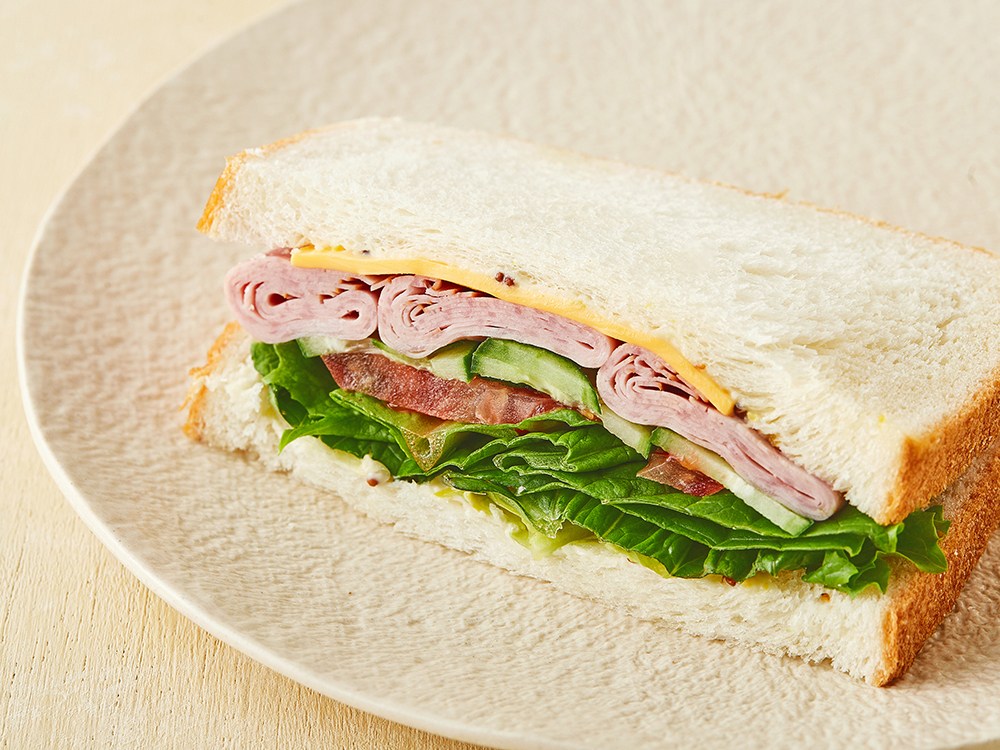 식빵 사이에 갖은 채소와 속 재료를 채워 넣은 샌드위치예요. 토마토, 양상추, 오이가 아삭한 식감과 산뜻한 풍미를 선사하고요. 부드러운 프레스햄은 짭조름한 감칠맛을 자아낸답니다. 여기에 홀그레인 머스타드가 톡 쏘는 포인트까지 더해주죠. 포장만 뜯으면 바로 드실 수 있으니, 우유나 따뜻한 커피를 곁들여 즐겨보세요.